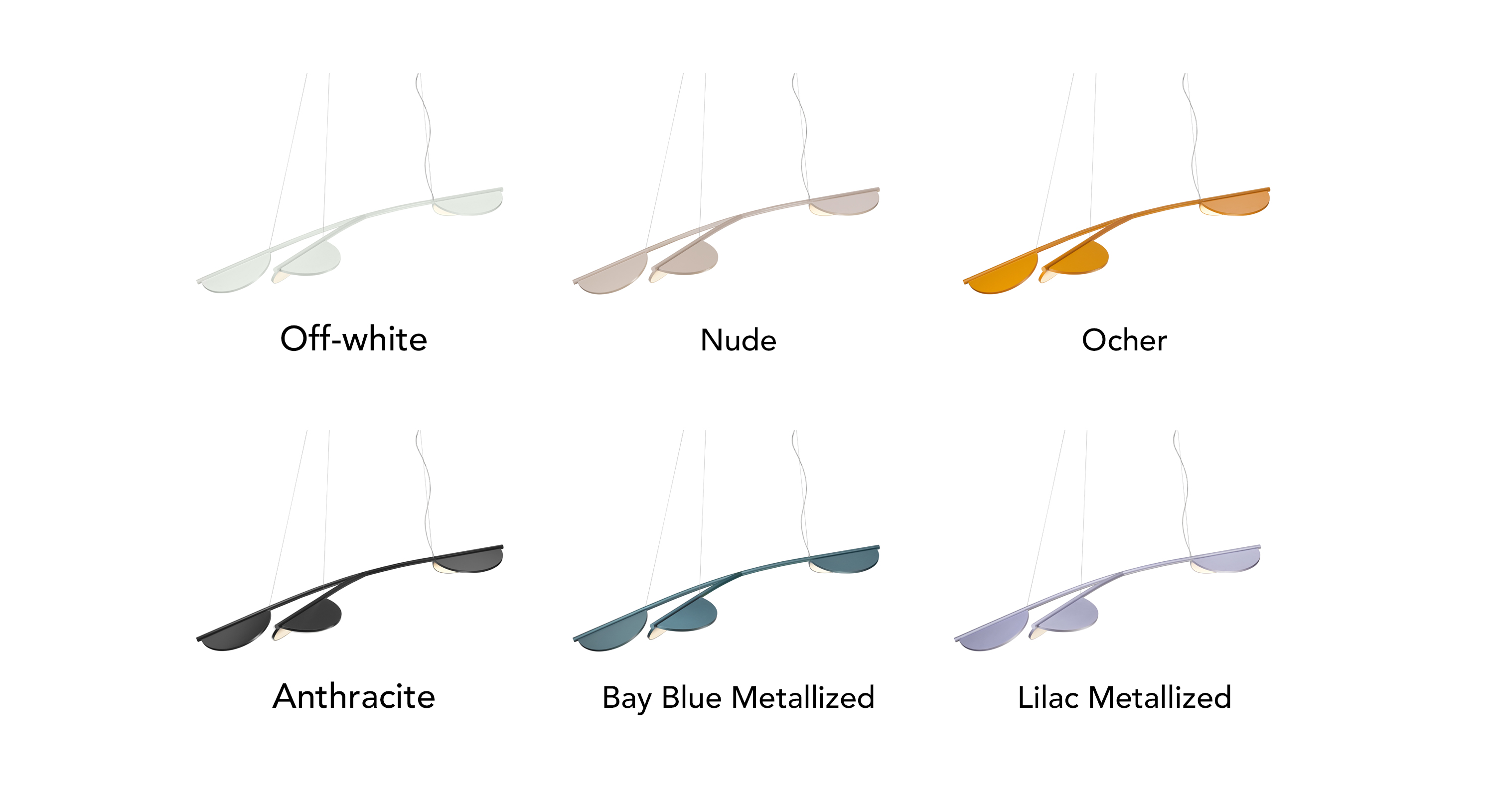 Patricia Urquiola has chosen a very natural colour palette inspired by the colours of the almond tree. Beautiful matt finishes such as Off-White, Nude, Ocher, Anthracite are completed with two metallic colours, Bay Blue Metallized and Lilac Metallized.
